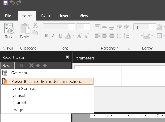 Let's create the paginated report select the "Create Paginated Report" and connect to the dataset (semantic model). We will be using the same Semantic Model.