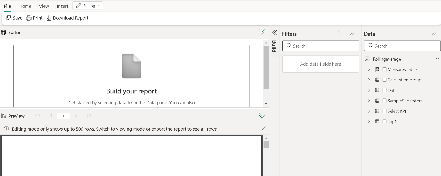 This will open a similar environment to report builder but quite close to Power BI interface which is bit easier to navigate for users.