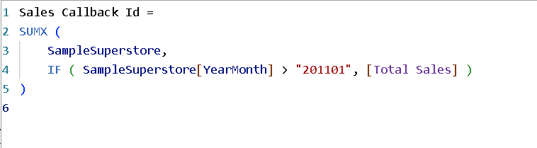 IF ( SampleSuperstore[YearMonth] > "201101", [Total Sales] )