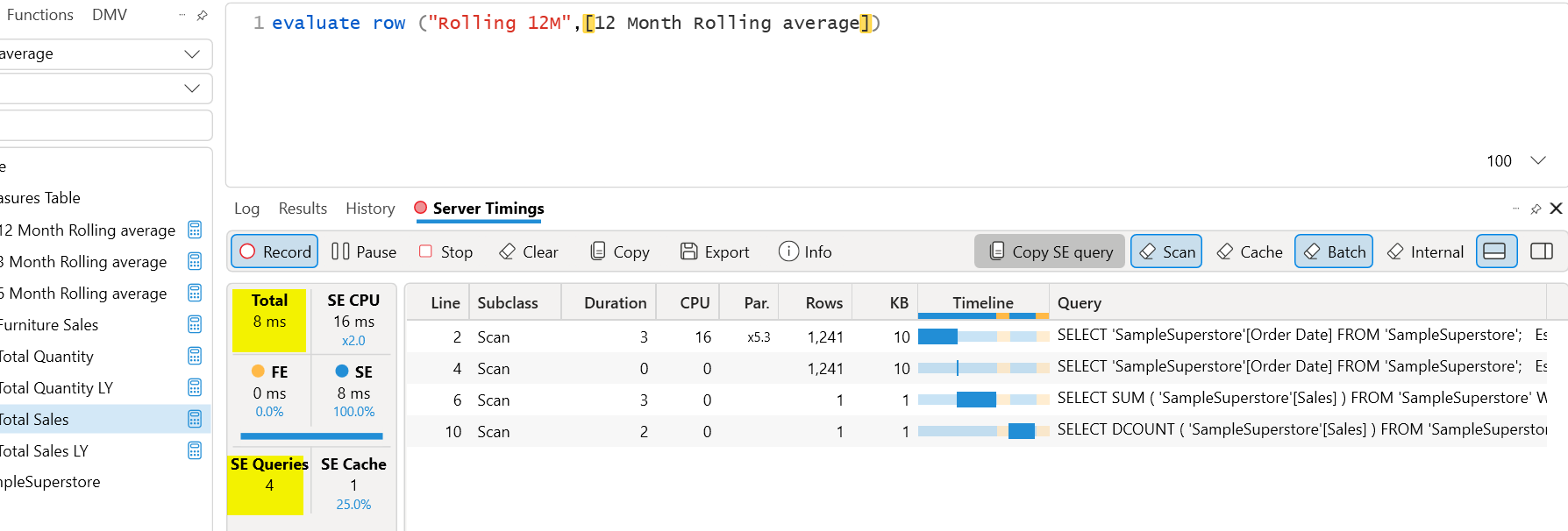 Can we see how your DAX is performing? We can see the server timings for your measure. You can use the below-mentioned query to see the performance of the DAX.